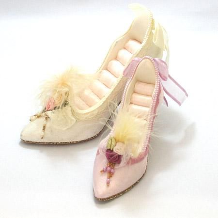 とびっきりスイートなお店で見つけた靴の形のジュエリーケース。羽のフワフワ感がたまりません。