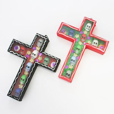 【メキシコ雑貨】カラベラの十字の壁掛け