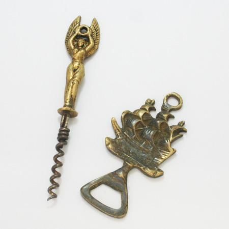 アンティークの重厚感のあるコルク抜きと栓抜き。